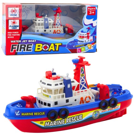 Statek Strażacki Łódź Z Holownikiem i Psikawką Wodną Światła Dźwięki