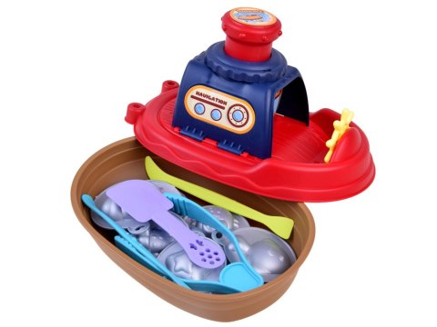 Statek rybacki z masa plastyczną do zabawy, tworzenia zwierzątek morskich takich jak rybki, żółw, kraby, krokodyl, muszelki, rozgwiazdy. Plastikowa łódka z kominem do wyciskania form, jest łatwa w obsłudze. Zestaw wyposażony w akcesoria, które ułatwią zabawę podczas tworzenia podwodnego świata. Zabawa łódką i akcesoriami jest bardzo kreatywna i ciekawa.