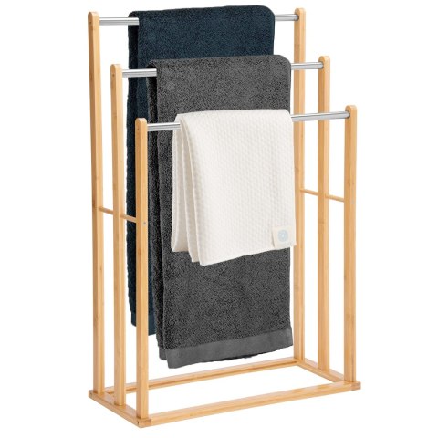 Stojak jest odpowiedni zarówno do dużych ręczników kąpielowych, jak i mniejszych ręczników do rąk czy ściereczek, zapewniając wygodne przechowywanie.
