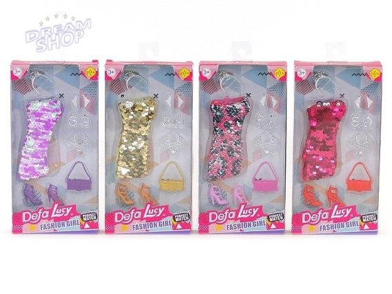 Suknia wieczorowa dla lalki 29cm, z butami i torebką; 23x11x3cm W/B