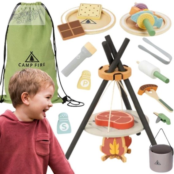 TOOKY TOY Drewniany Kempingowy Zestaw Do Gotowania Ognisko