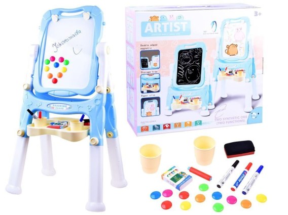 Zestaw do malowania, duża tablica, sztaluga, szkoła, rysowanie, nauka pisania, malowanie, magnesy, pisaki suchościeralne, kreda