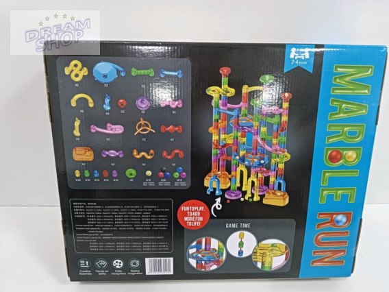 Kolorowy, wytrzymały, tor do samodzielnego montażu ze świecącymi w ciemności kuleczkami dla dzieci od trzeciego roku życia. Zabawa polega na samodzielnym zbudowaniu konstrukcji toru, a potem puszczaniu piłeczek tunelami. Puszczanie w ruch kuleczek i obserwowania jak pokonuje kręte tunele, daje mnóstwo radości, uspokaja i wycisza. Zabawka pozytywnie wpływa na rozwój kreatywności, wyobraźni i zdolności manualnych.
