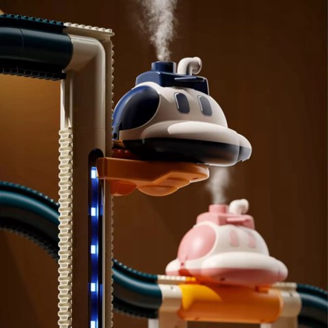 Całemu procesowi towarzyszą świecące światełka na torach, co dodatkowo uatrakcyjni zabawę i zwróci uwagę dziecka.