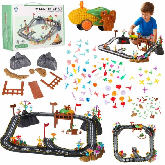 Ten zestaw magnetycznych klocków pobudza sposób myślenia prawdziwego konstruktora. Klocki magnetyczne umożliwiają tworzenie toru z zakrętami, wzniesieniami i przejazdami poprowadzonych wśród bogatej, kolorowej roślinności, która nadaje całej konstrukcji wyjątkowy charakter. Magnetyczne elementy pewnie się ze sobą łączą, co pozwala szybko zmieniać układ trasy bez wysiłku. Dodatkowe łączenia od spodu wzmacniają całą konstrukcję, dzięki czemu tor jest jeszcze bardziej stabilny nawet przy rozbudowanym układzie.