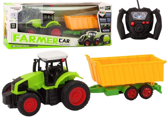 Zdalnie sterowany traktor w skali 1:16 z przyczepą to doskonała zabawka dla dzieci, które uwielbiają pojazdy rolnicze. Traktor, utrzymany w charakterystycznym zielonym kolorze, odzwierciedla realistyczny wygląd, posiada duże, wytrzymałe koła oraz szczegółowo odwzorowaną kabinę kierowcy, co dodaje autentyczności zabawie. Przyczepa, wykonana w intensywnym żółtym kolorze, montowana jest na haku holowniczym traktora i posiada swój własny unikalny design, z dbałością o szczegóły.