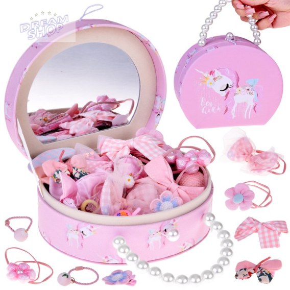 Szkatułka dla dziewczynki na biżuterię ozdoby zestaw gumki spinki do włosów kuferek na drobiazgi