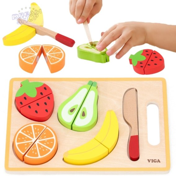 VIGA Drewniana Układanka Edukacyjna Montessori Owoce do Krojenia