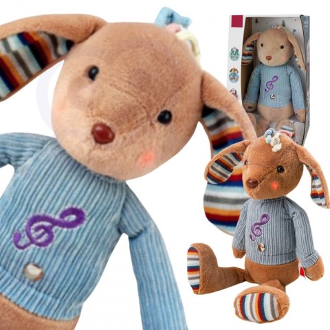 Przytulanka jest wyposażone w trzy strefy sensoryczne - na łapkach i brzuszku, których dotyk zamienia się w muzykę. A jego różowe policzki są oświetlone, tworząc prawdziwą bajeczną atmosferę wokół zabawki. Przytulanka ubrana jest w sweterek pod którym schowane jest miejsce na 3 baterie.Ten miękki w dotyku piesek stanie się przyjacielem dziecka na wiele lat.