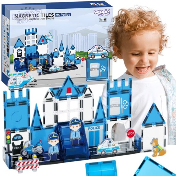 WOOPIE Klocki Magnetyczne 3D Zestaw Komisariat Policji 42el.
