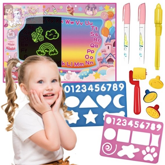 WOOPIE Mata Wodna do Malowania 2w1 XXL 100x70cm Świeci w Ciemności