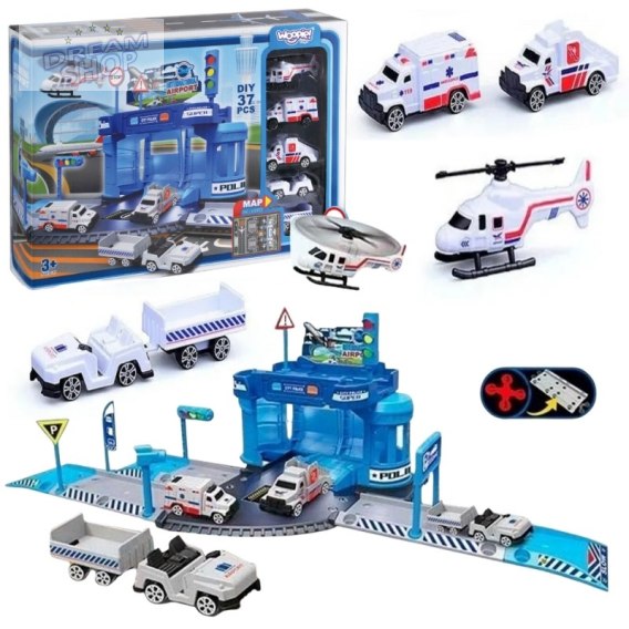 WOOPIE Zestaw Parking z Autami i Lądowiskiem dla Helikoptera 37el.