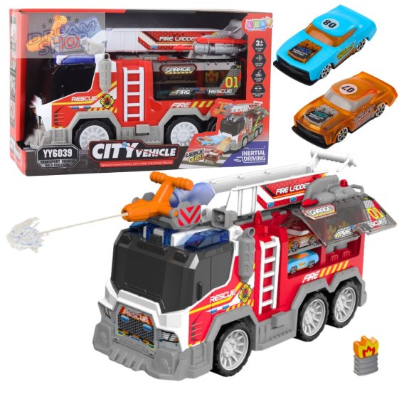 Wóz wyposażony jest w obrotową i wysuwaną drabinę, którą można ustawiać w różnych pozycjach. Na szczycie znajduje się działko wodne, z którego można naprawdę lać wodę. Z tyłu pojazdu umieszczono otwierany schowek, w którym można przechowywać małe samochodziki lub akcesoria, co dodaje zabawie realizmu.