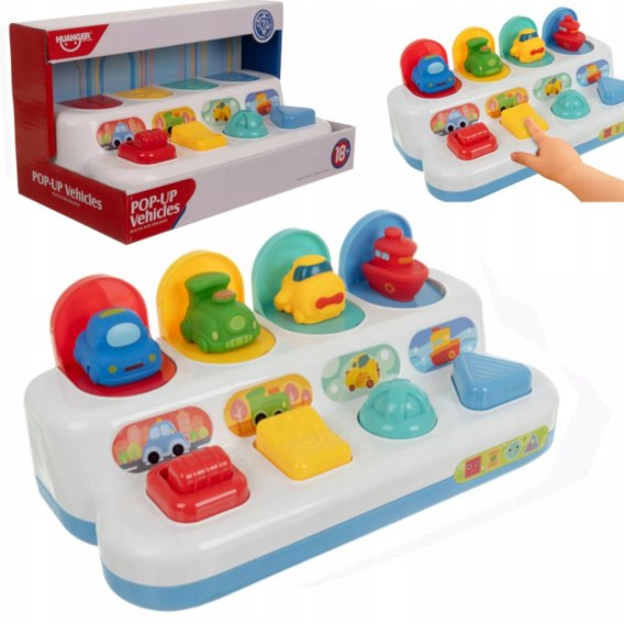 Zabawka edukacyjna POP-UP Wyskakujące Pojazdy 4w1 to idealny sposób na połączenie nauki i zabawy. Dzięki pokrętłom, dźwigniom i przyciskom dziecko ćwiczy koordynację ręka-oko, logiczne myślenie i motorykę małą, a pojawiające się pojazdy wywołują radość i zachęcają do dalszego odkrywania. Kompaktowy rozmiar sprawia, że zabawkę można zabrać w podróż, na spacer, do dziadków czy używać na dywanie w domu.