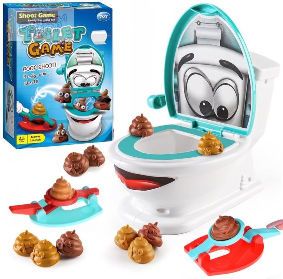 Zręcznościowa gra dla dzieci i dorosłych, gra dla dwóch osób, kupa, odchody, nocnik, toaleta, muszla klozetowa, uśmiechnięty kibelek, wyrzutnia, gra w toaletę