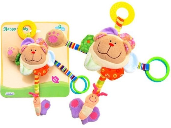Zawieszka do łóżka, na łóżeczko, do wózka, gryzak, gryzaczek, zabawka sensoryczna, miś, misio, zwierzątko, zabawka dla niemowlaka, dla dzidziusia, motylek, szeleścik, szeleszcząca zabawka