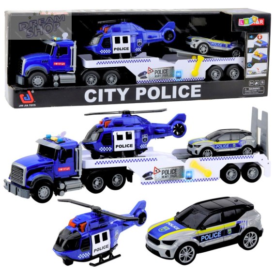 CIĘŻARÓWKA POLICYJNA CITY POLICE Z HELIKOPTEREM I SAMOCHODEM