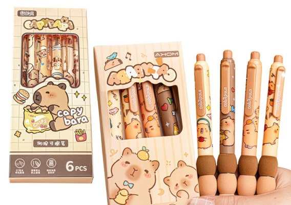 Zestaw Długopisów Z Kapibarą 6 Sztuk Niebieski Tusz