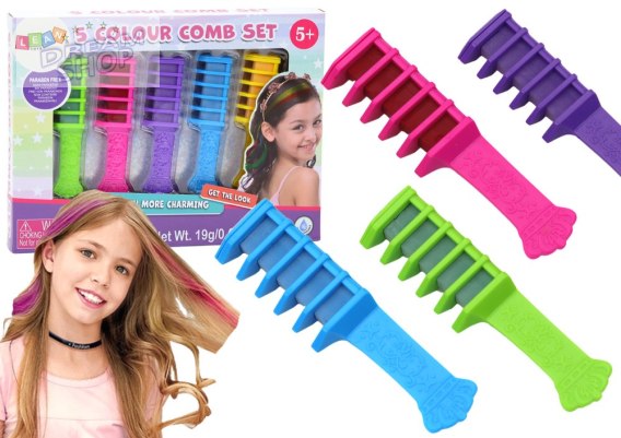 Kreda-grzebień to bezpieczna i kreatywna zabawa dla dzieci, umożliwiająca tworzenie różnokolorowych fryzur. Zmywalna po pierwszym myciu. Zawiera 5 kred-grzebieni.