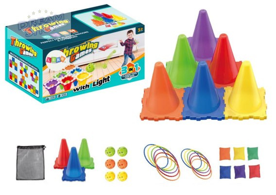 Zestaw gier zręcznościowych 3w1 to idealna zabawka do domu i na podwórko. Zawiera pachołki jako cel oraz obręcze, woreczki i piłeczki do rzucania. Rozwija koordynację ruchową i precyzję, zapewniając aktywną i kreatywną zabawę dla dzieci w każdym wieku.