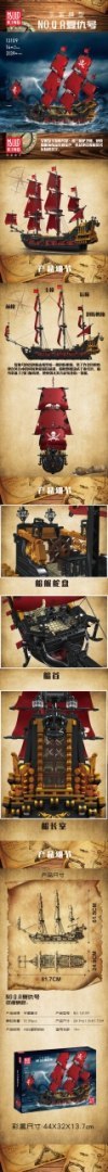 Zestaw 3139 klocków konstrukcyjnych do samodzielnej budowy pirackiego statku. Zabawka przeznaczona dla dzieci od 14-go roku życia. Klocki i elementy statku wykonane zostały z wysokiej jakości tworzywa sztucznego. Jest możliwość łatwego demontażu kadłuba i kabiny kapitana, aby zobaczyć środek pokładu. Statek posiada wiele ruchomych elementów, jak otwierane drzwi kabiny, podnoszone klapy od armat oraz ruchomą kotwicę. W zestawie dołączono instrukcję obrazkową. Układanie klocków konstrukcyjnych rozwija u dzieci zdolności manualne, wyobraźnię przestrzenną i cierpliwość.