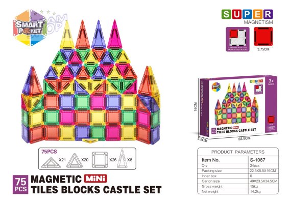 Zestaw Kolorowych Klocków Magnetycznych 75el.