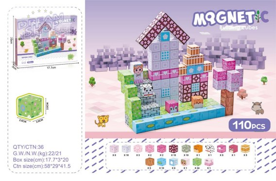 Zestaw Kostek, Klocków Magnetycznych 110el.