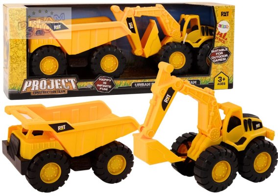 Zestaw Maszyn Budowlanych Koparka Wywrotka Ruchome Żółty