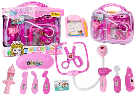 Walizka, w której znajduje się cały zestaw, jest nie tylko estetyczna i atrakcyjna dzięki swojemu różowemu kolorowi, ale także niezwykle praktyczna. Solidna i łatwa do przenoszenia, pozwala dzieciom zabrać cały zestaw ze sobą wszędzie. Dzięki temu dziecko może zawsze mieć pod ręką swoje ulubione narzędzia medyczne, gotowe do przeprowadzania kolejnych zabiegów.