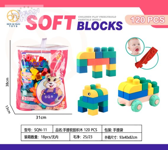 Zestaw kolorowych miękkich klocków dla dzieci od trzeciego roku życia. Zestaw wykonano  z bezpiecznego dla dzieci i środowiska materiału PVC. Klocki są lekkie i nie posiadają ostrych zakończeń. Bardzo łatwo je utrzymać w czystości, po wyparzeniu, nie tracą kolorów. Klocuszki możemy dowolnie wyginać, a po wygięciu wracają do swojego poprzedniego kształtu.