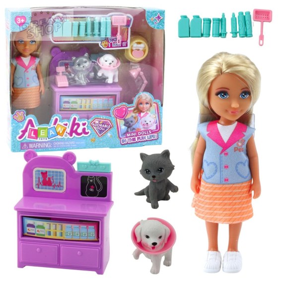 Mini Laleczka Weterynarz z Zestawem Leczenia Zwierząt to zabawka, która przenosi dzieci w świat troski, opieki i odpowiedzialności. Lalka o wysokości 13 cm została przedstawiona jako młoda pani weterynarz - ubrana w profesjonalny strój.