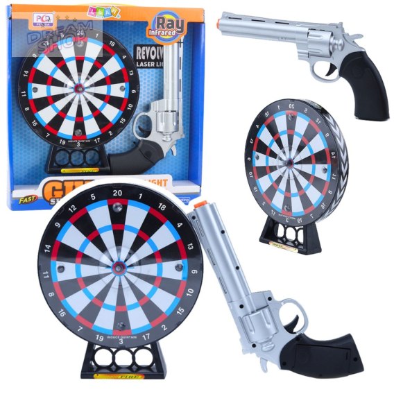 Zestaw Pistolet Rewolwer Laserowy Z Tarczą Gra Strzelecka Światła Dźwięki