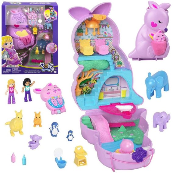Wewnątrz torebki- kangurka znajdziemy wszystko, co potrzebne do kompleksowej opieki nad zwierzakami! A zadaniem Polly jest zaopiekowanie się mamą kangurzycą, słoniem oraz pingwinem oraz ich pociechami a także koalą, więc pracy jest baardzo dużo. Na szczęście Polly może liczyć na pomoc wiernej przyjaciółki.