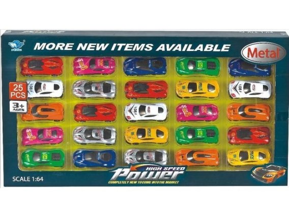 • 25 kolorowych samochodzików,