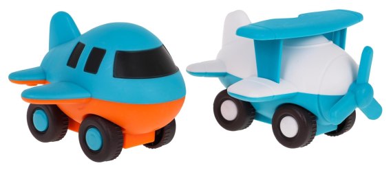 Zestaw samolotów z napędem dla dzieci od 3-go roku życia. Zestaw składa się z dwóch samolotów wykonanych ze znakomitej jakości plastiku, bezpiecznego dla dzieci i odpornego na uszkodzenia mechaniczne. Żywa kolorystyka przyciąga wzrok dziecka i zachęca do zabawy. Napęd umożliwia jazdę modelu do przodu, wystarczy delikatnie pchnąć pojazd do przodu.