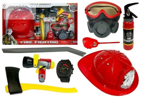 Zestaw Strażacki Kask Gaśnica Toporek Maska Łom