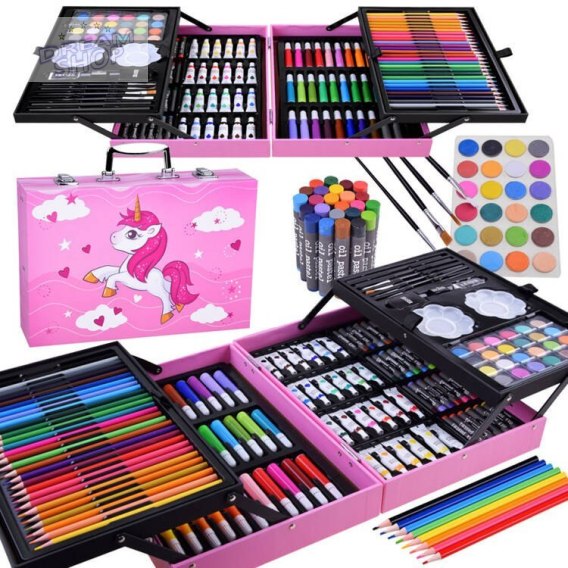 Duży zestaw plastyczny artystyczny kreatywny do malowania rysowania z wyposażeniem kredki pisaki farby