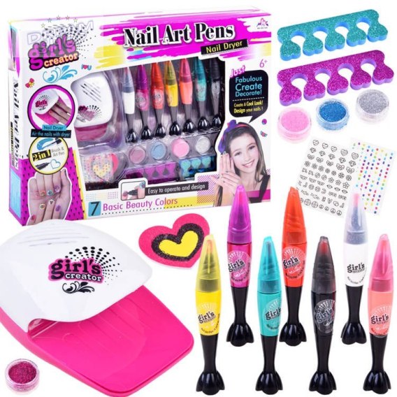 Lakier, ozdoby do paznokci, suszarka - zestaw do manicure dla dzieci