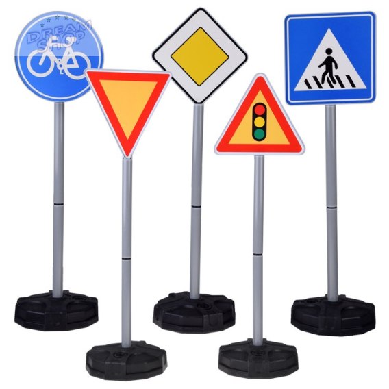 W zestawie znajduje się 5 popularnych znaków drogowych: