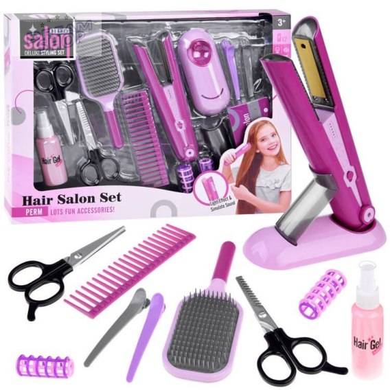 Prostownica z efektem dźwiękowym i świetlnym, zestaw dla małego fryzjera