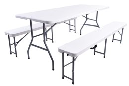 Składany stolik to praktyczne rozwiązanie i estetyczny element wyposażenia. Jego blat zachwyca ciekawym wzorem, który doskonale imituje drewno. Dzięki temu stolik nadaje się doskonale do aranżacji zarówno w nowoczesnym, jak i klasycznym stylu. Warto również podkreślić, że składany mechanizm sprawia, że stolik można łatwo przechowywać i transportować, co czyni go wszechstronnym i funkcjonalnym dodatkiem do Twojego ogrodu czy tarasu.