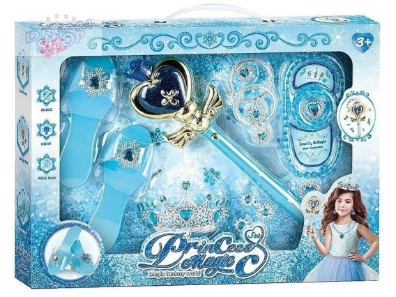 zestaw piękności, buty, różdżka, diadem, biżuteria; 44,6x33x6,4cm, W/B