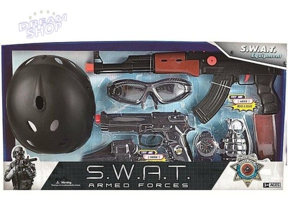 zestaw policyjny z hełmem; 59,5x30,5x11cm, W/B