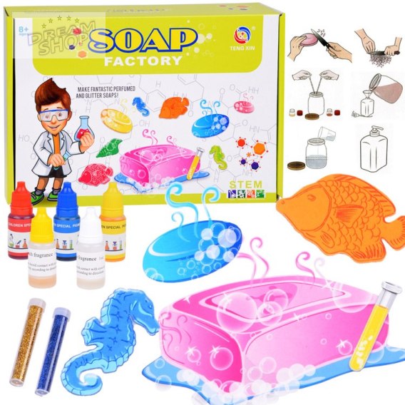 W trakcie przygotowywania mydełek, dzieci rozwijają swoje zdolności manualne, szczególnie przy wlewaniu mydła do foremek, mieszaniu składników, czy precyzyjnym dozowaniu barwników. Zestaw wprowadza dzieci w podstawowe zagadnienia chemiczne, takie jak topnienie substancji, mieszanie składników oraz proces twardnienia mydła, co pobudza zainteresowanie nauką.
