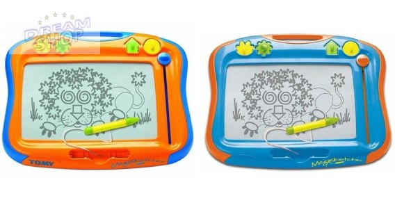 Znikopis to świetna zabawa, ale też sposób na naukę i doskonalenie rysowania bez bałaganu i zabrudzeń! Co więcej, szkicownik od marki Tomy jest wyposażony w specjalną tablicę, która fakturą zbliżona jest do klasycznego papieru. Dzięki temu rysunki wyglądają o wiele bardziej realnie niż wcześniej! Na tablicy znajduje się wgłębienie na długopis, który dodatkowo połączono ze szkicownikiem za pomocą sznureczka oraz miejsce na stempelki. Megaszkicownik zabierzemy ze sobą wszędzie, a jego transport ułatwia specjalna rączka.